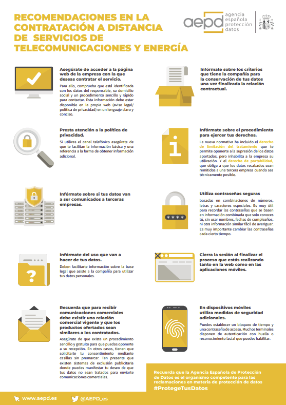 La Agencia Española de Protección de Datos acaba de finalizar un Plan de Inspección de oficio, para verificar el grado de cumplimiento de la normativa de protección de datos cuando se contratan servicios por teléfono o internet. Los planes de oficio de la AEPD no tienen carácter sancionador sino preventivo y ofrecen una visión integral para detectar deficiencias y plantear mejoras.