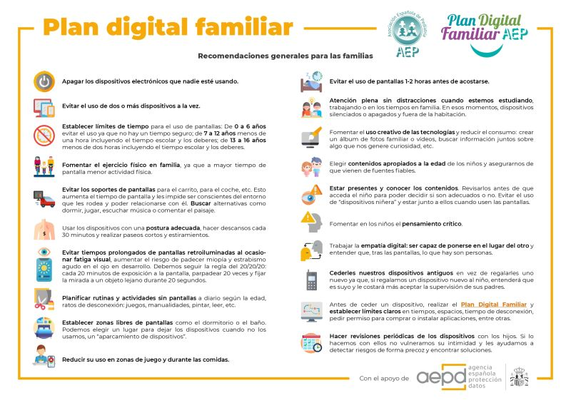 Se han actualizado las recomendaciones del Plan Digital Familiar en base a la nueva evidencia científica, siguiendo las pautas de la Asociación Española de Pediatría (AEP).